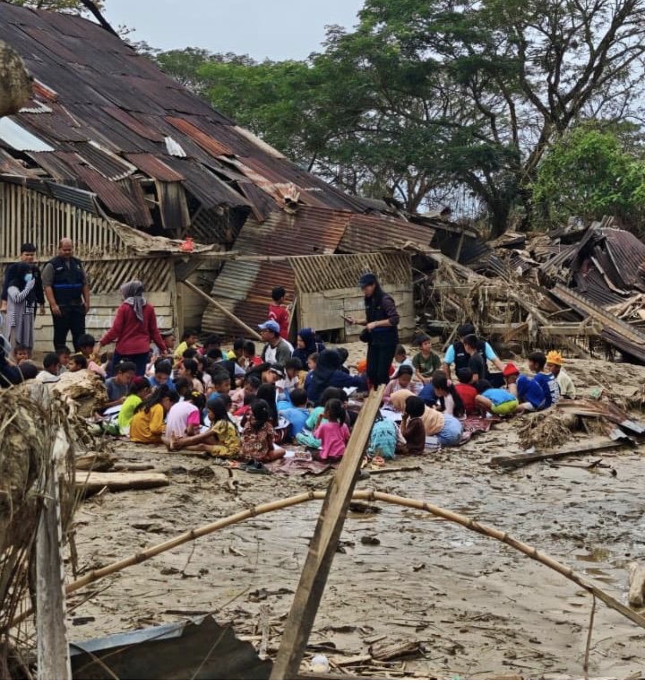Disamping itu, juga diberikan sesi storytelling kepada para anak-anak di lokasi Dusun Lintang Bawah, sebagai upaya untuk mengurangi efek trauma mereka yang turut menjadi korban bencana banjir tempo hari.